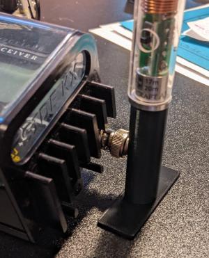 This stand holds up the AX1 antenna when connected to the Elecraft KX2 (55mm tall)